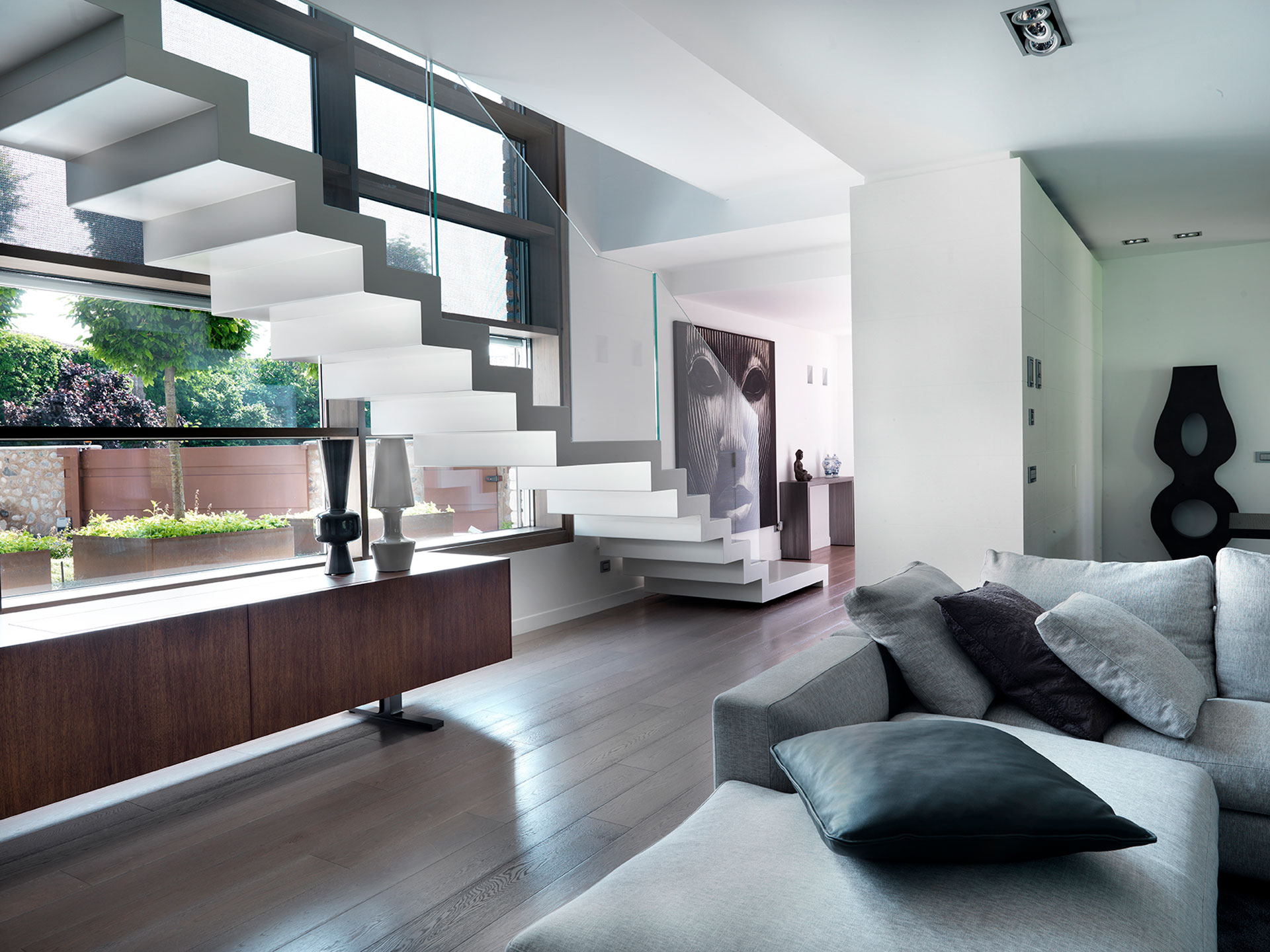 La scala in ferro diventa all’interno casa una vera e propria scultura, nonostante l’apparenza esile è forte e ben resistente.