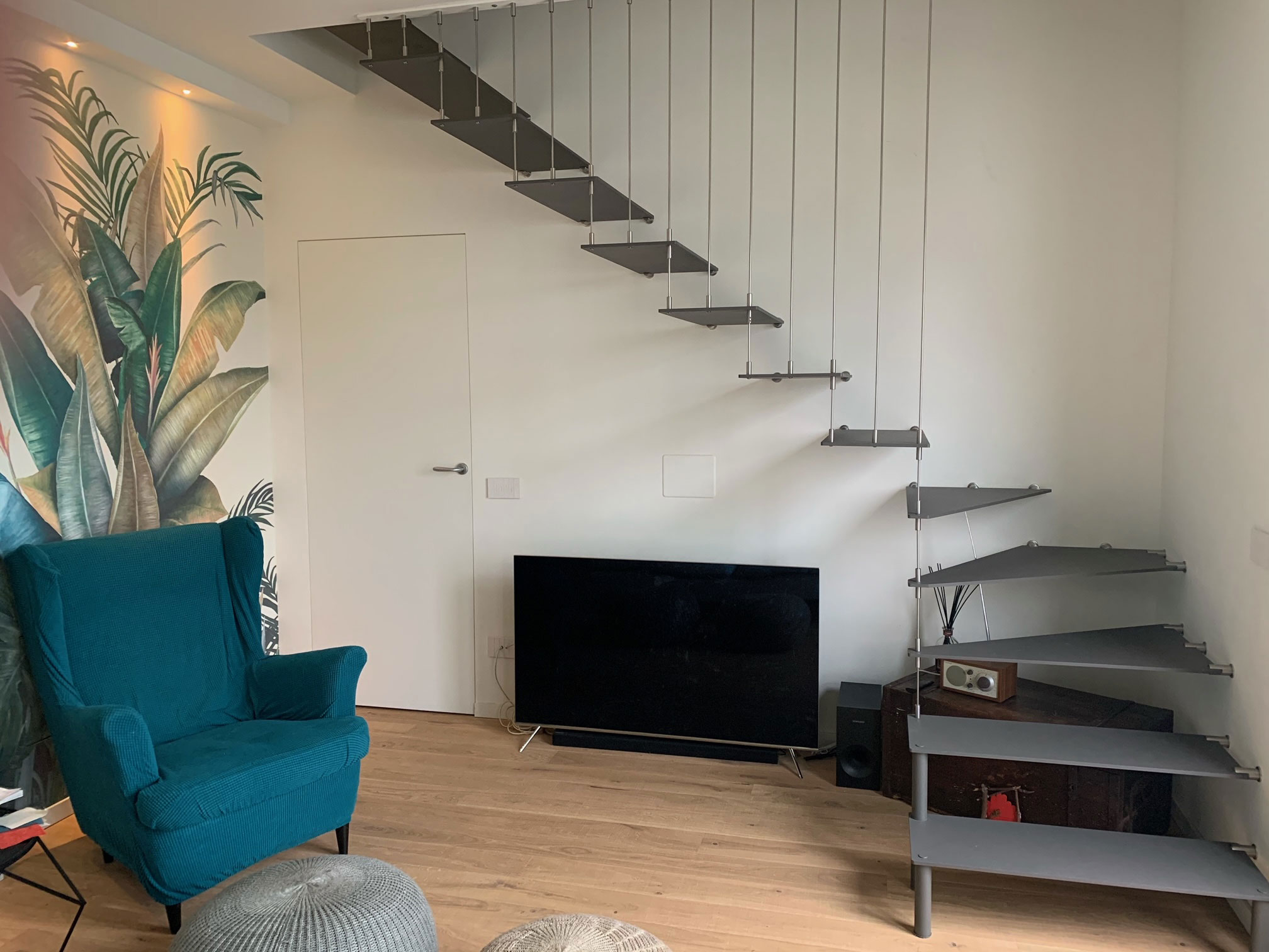 Le scale a sbalzo hanno linee pulite e minimali; solo gradini in legno massello, vetro o metallo sottilissimo da 1 cm ancorati direttamente alla muratura e collegati tra loro sul lato libero a sbalzo, da ringhiere minimali, lastre in cristallo strutturale o filoncini in acciaio inox da 6 mm ancorati al soffitto l’aspetto leggero della scala potrà così adattarsi ad ogni tipo di ambiente, sia esso classico o moderno.